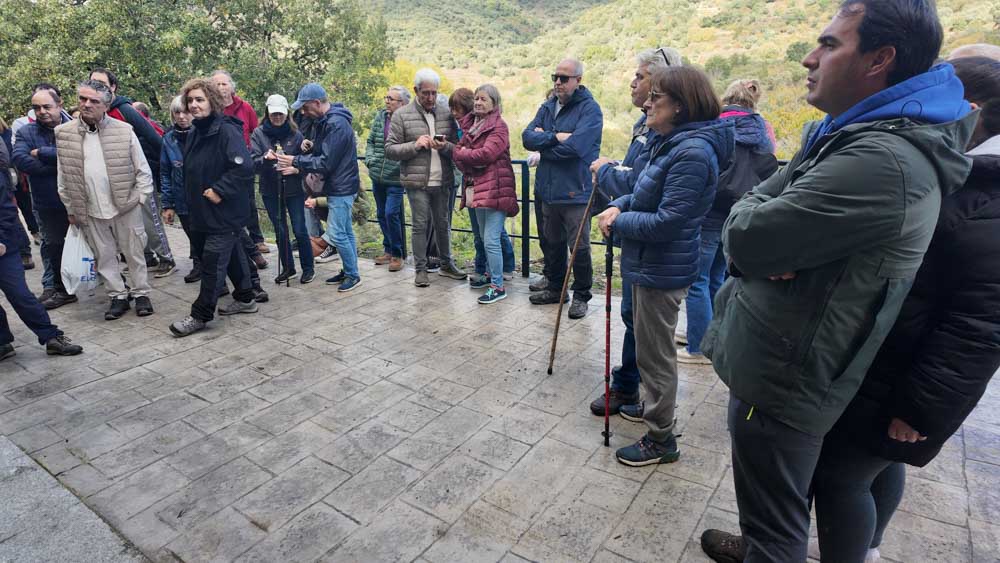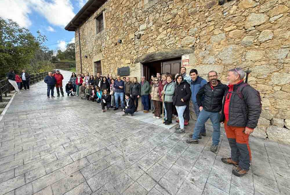 Esta iniciativa ha contado con la presencia del alcalde de San Esteban de la Sierra, Antonio Labrador, y el diputado de Turismo, Juan Carlos Zaballos. La jornada ha comenzado a las 9:45 horas con la recepción de los participantes en la Plaza Mayor, desde donde ha arrancado el recorrido de la Ruta El Atajo. Una ruta circular de apenas dos kilómetros que discurre entre miradores, lagares rupestres y bosques de castaños, un sendero al que se han incorporado creaciones artísticas impulsadas por ocho alumnos de Bellas Artes de la Universidad de Salamanca. Los caminantes han disfrutado no solo de la belleza natural de San Esteban, sino también de su legado etnográfico plasmado en las obras de arte que evocan al bordado serrano y al trabajo de las mujeres locales.