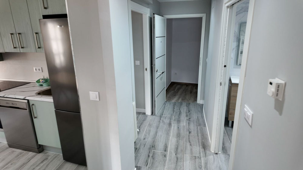 La vivienda de calle Alhóndiga cuenta con aproximadamente 63 metros y dispone de dos dormitorios, espacio principal de salón-comedor-cocina, un baño accesible y un vestíbulo de acceso.